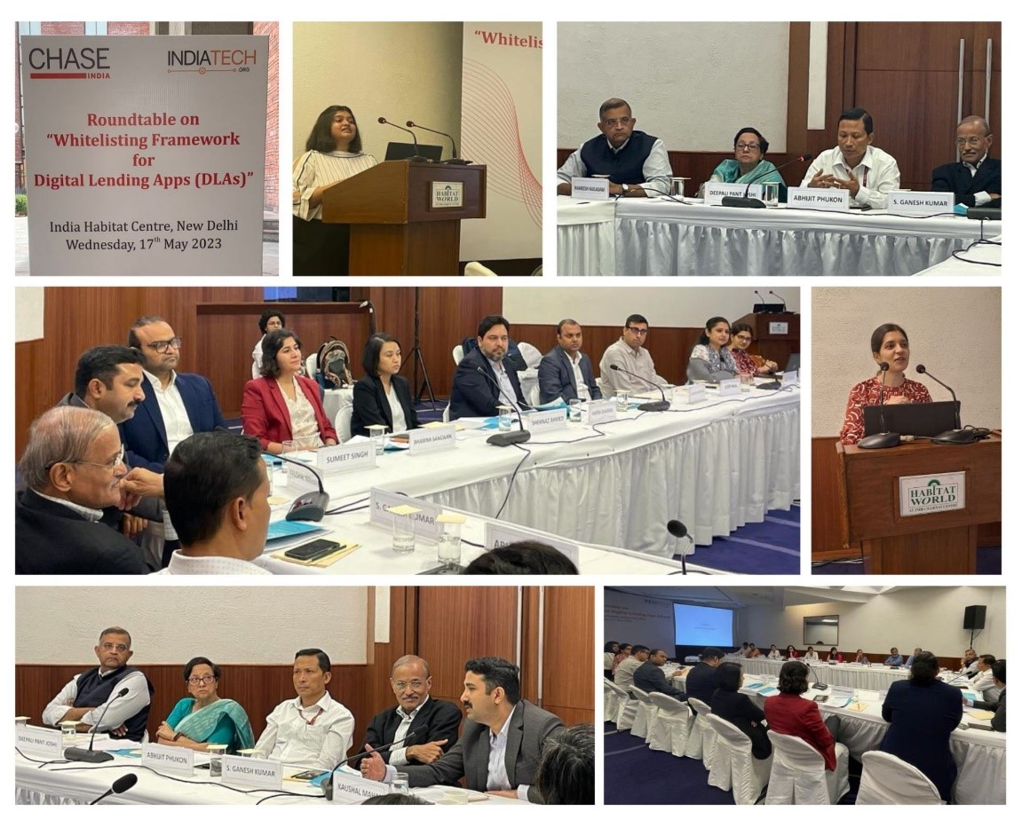 With the FinTech revolution in India’s credit markets, the rapid sectoral growth brought along its own set of perils. Borrowers bore the brunt of unchecked digital lending practices which took the form of lending at exorbitant interest rates, unethical and predatory recovery practices, additional hidden charges in lending transactions, misuse of customers’ data, etc. While a favourable policy and regulatory infrastructure for digital lending services was in the pipeline, Chase India proactively championed the creation of a comprehensive report titled 'Whitelisting Framework for Digital Lending Apps (DLAs) followed by a roundtable discussion on the same.' To further discuss and develop on the policy roadmap, basis the recommendations in the report, Chase India & IndiaTech.org hosted an invite-only roundtable on 'A Whitelisting Framework for Digital Lending Apps (DLAs)’ on 17th May, 2023.
